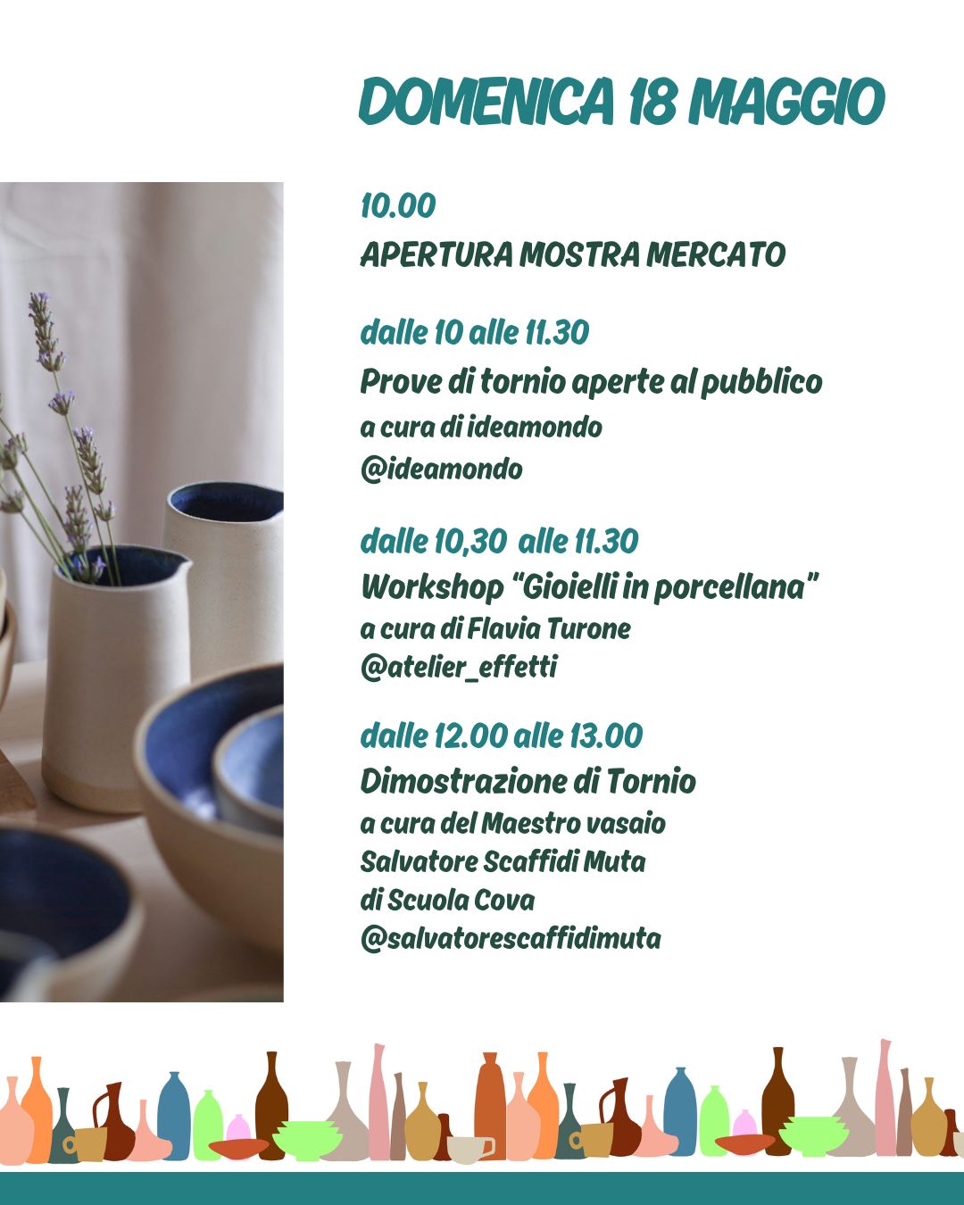 L'evento è aperto al pubblico gratuitamente, ci saranno workshop dimostrativi, mostre inerenti alla ceramica oltre a una vasta selezione di ceramisti. Segui l'evento sui social qui e su facebook qui.